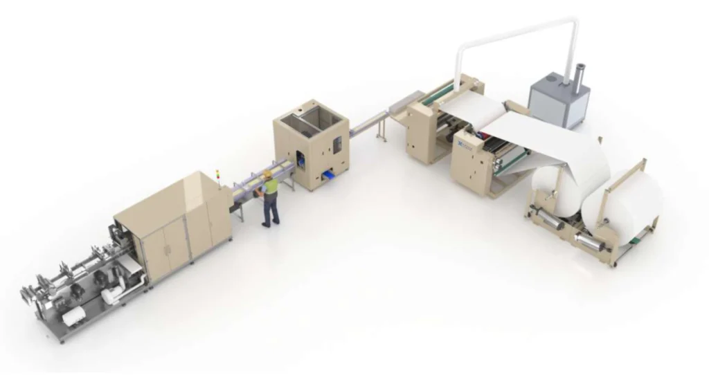High-performance non-stop line running at 500 m/min. Features Siemens & Schneider Electric core for zero-latency control and heavy-duty support for 3,000kg jumbo rolls.