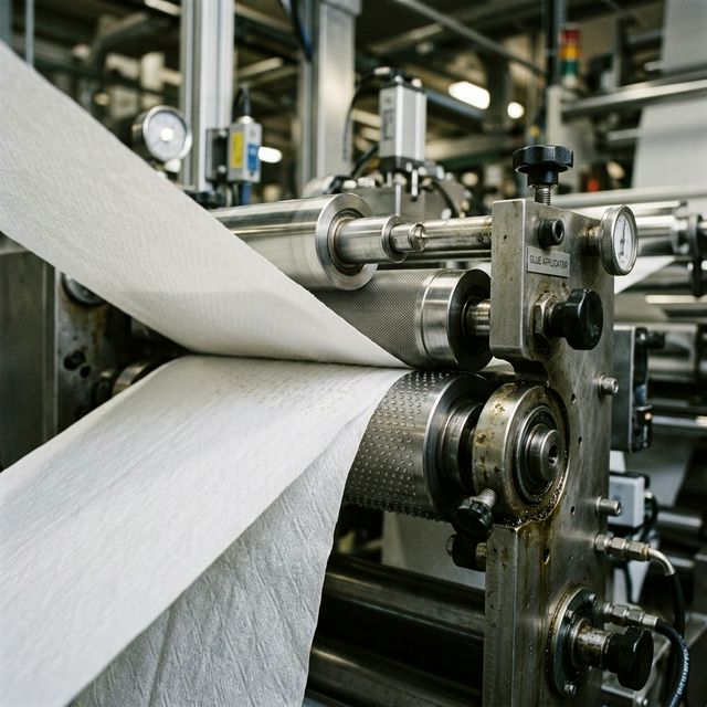 Lamination utilizes precision steel-to-rubber rollers to apply micro-drops of adhesive between the tissue layers. This advanced process safely binds the plies while creating tiny air pockets within the paper, significantly enhancing the napkin’s volume (bulk), liquid absorbency, and luxurious tactile softness compared to standard mechanical embossing.