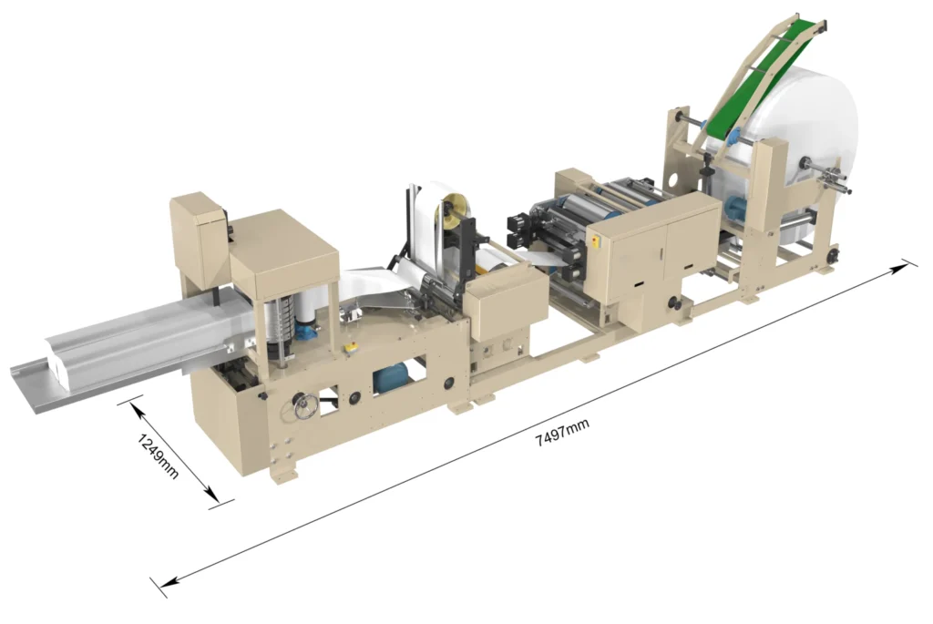 The machine is engineered with robust tension control, making it applicable to various grades of raw paper. Whether you are processing standard commercial tissue or premium multi-ply materials, it smoothly converts jumbo rolls into napkins of diverse specifications and grades.